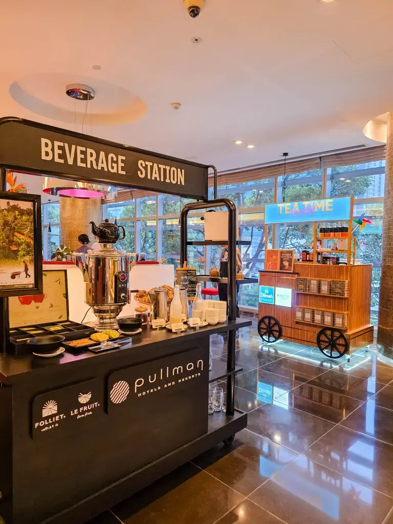 Pullman Saigon Centre 胡志明市第一郡早餐特色的復古飲料推車,提供現沖越南咖啡與茶飲。