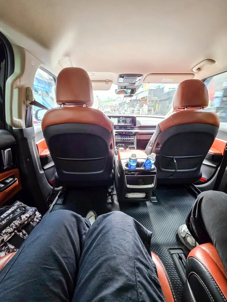 車內空調開得剛好,備有礦泉水,9 人座改成 4 人座的車內空間非常寬敞舒適。