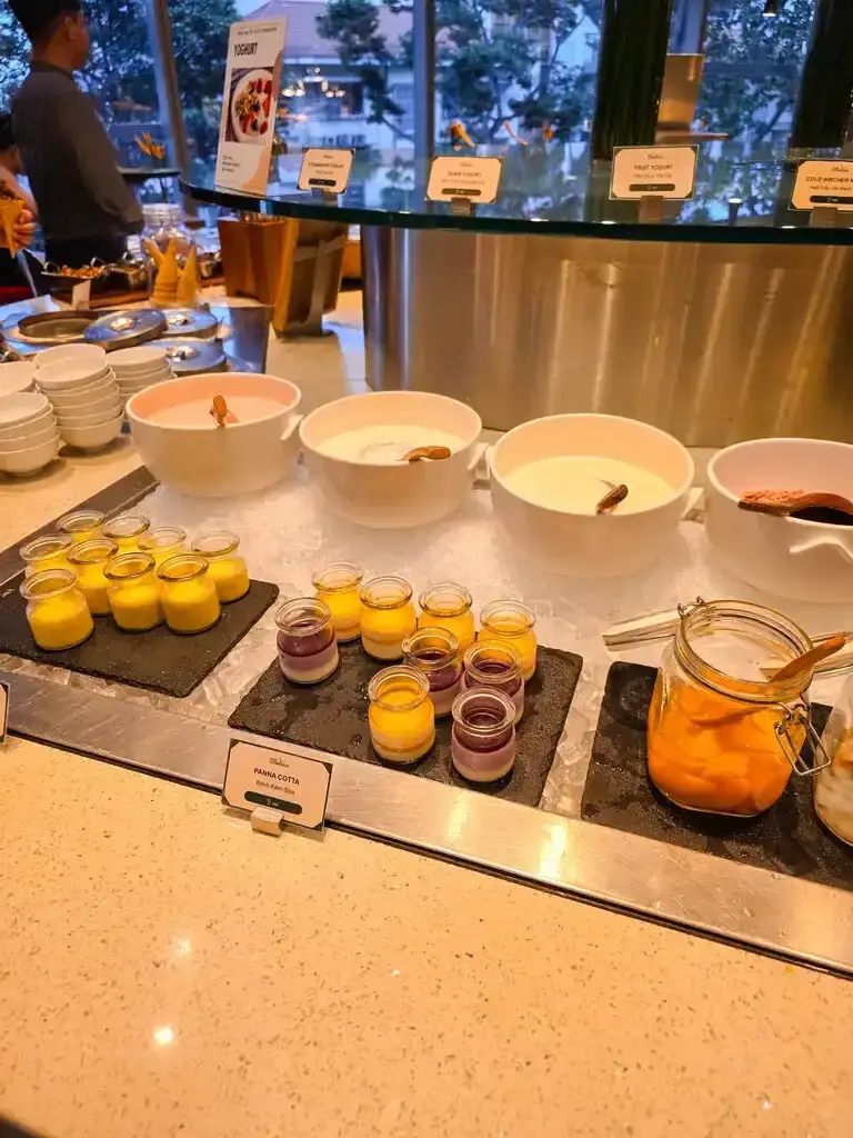胡志明市吃到飽精緻的手工優格吧與義式奶酪 (Panna Cotta) 甜點區,提供多種口味選擇。