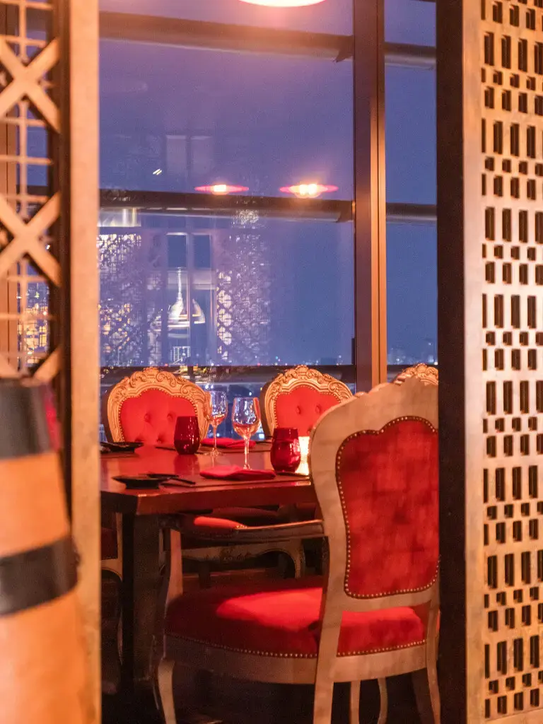 當電梯門在 30 樓打開的瞬間,城市的聲音被留在下方,取而代之的是一種很低的背景音:餐具碰撞、紅酒被倒進杯中的聲音,服務生低聲地親切問候。