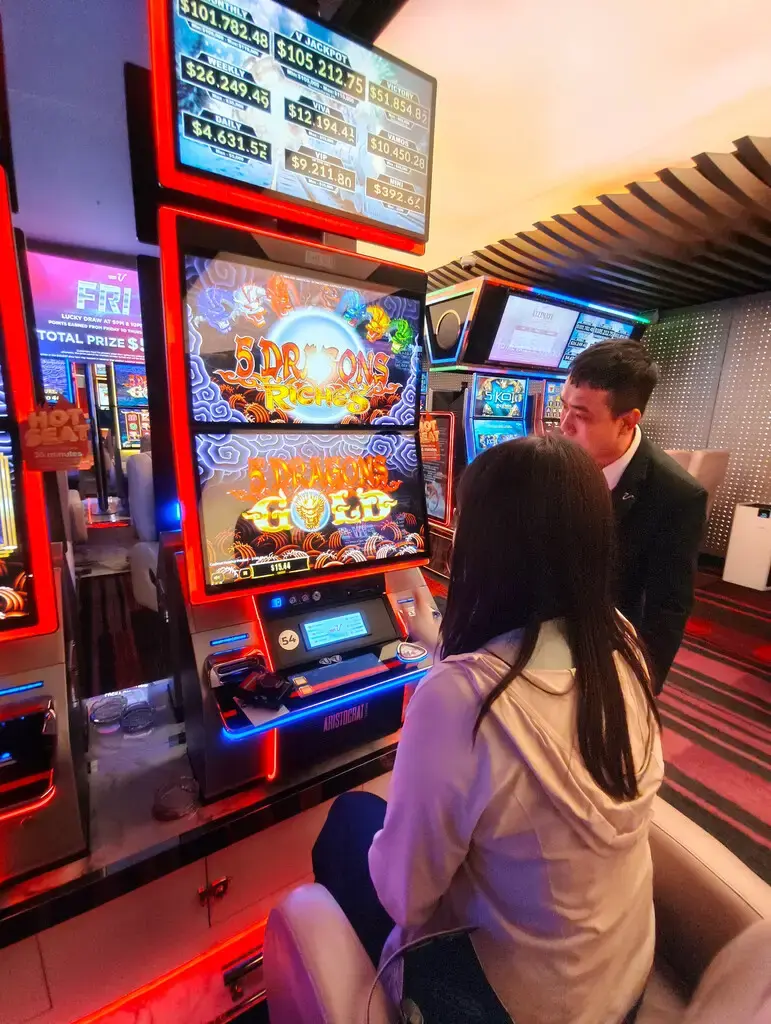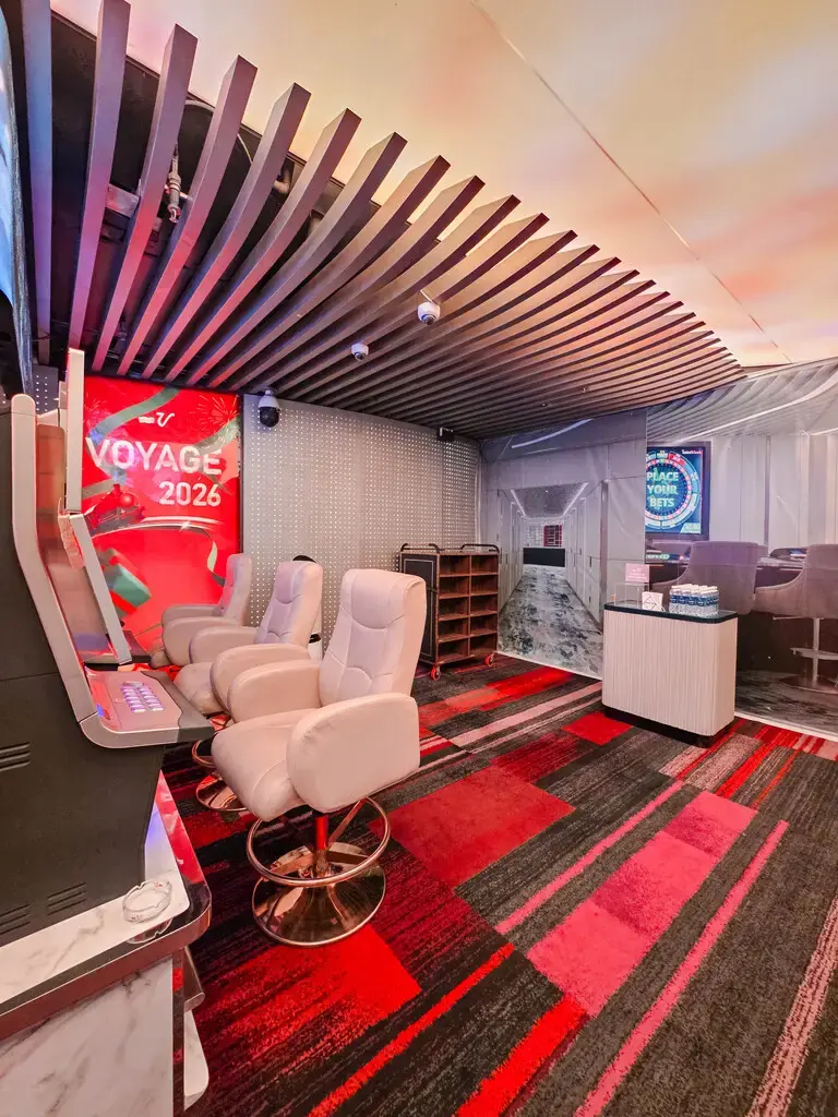 種類:主打最新型的電子老虎機 (Slot Machines)、電子輪盤 (Roulette) 與電子百家樂 (Baccarat)。機台新穎,聲光效果極佳。