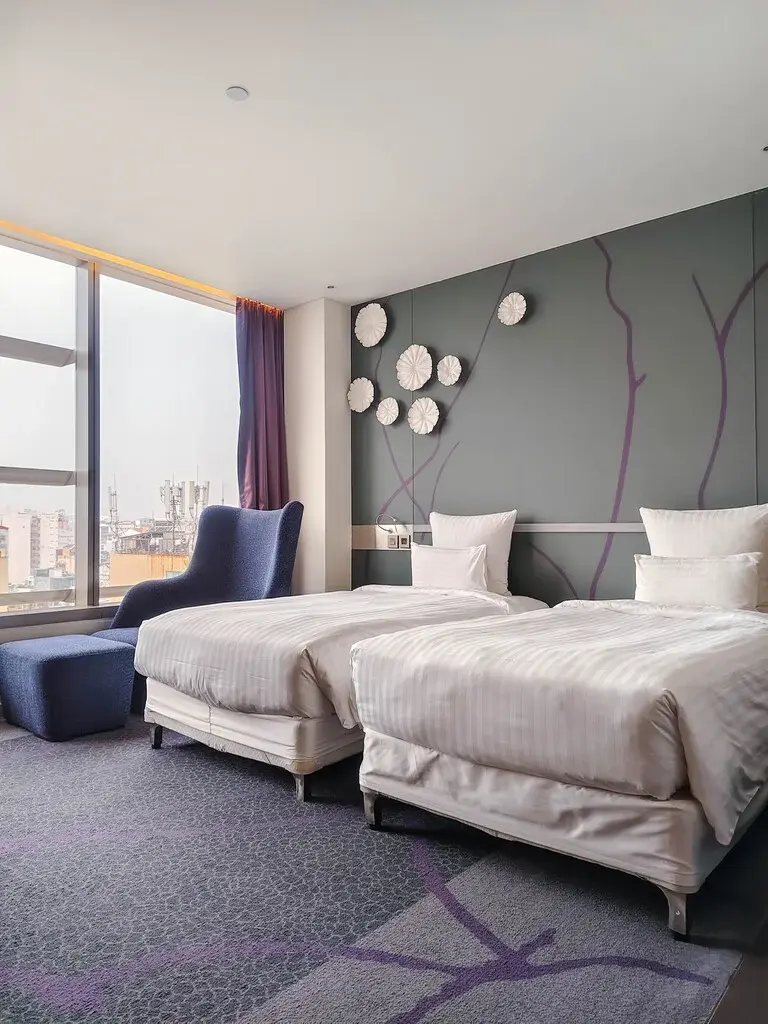 我這次住在 9 樓的 Superior Twin Room(高級雙床房),進門第一印象就是:空間比想像中寬敞,而且採光極好。