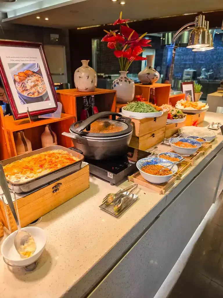 早餐:極具水準,網友一致推薦現煮的越南河粉 (Pho) 與多樣化的起司、烘焙麵包區,豐富度足以當作早午餐享用。